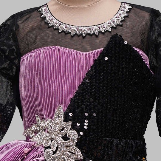 Kids gown in black color with full sleeves pattern. The gown for kids with a sequin pattern fits 18 months to 15 years girls perfectly, for party wearing.